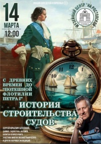 Сергей Юрьевич расскажет об истории строительства кораблей в Египте, Китае, Полинезии, Португалии, Испании… и России – начиная с военных флотилий Киевской Руси 9 века вплоть до строительства Петром I Потешной флотилии в Переславле и до начала создания регулярного военно-морского флота в России в 1696 году.